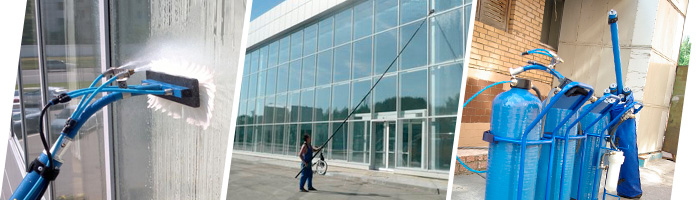 Мы используем сверхлегкие углепластиковые штанги и деминерализованную воду. Это оборудование не повреждает фасадные покрытия во время работы, прекрасно очищая поверхность от естественных загрязнений (сажа, грязь, пыль и т.д.). Тем самым мы не тратим Ваши средства на подъем наших специалистов на высоту при помощи подъемников или снаряжения альпинистов.